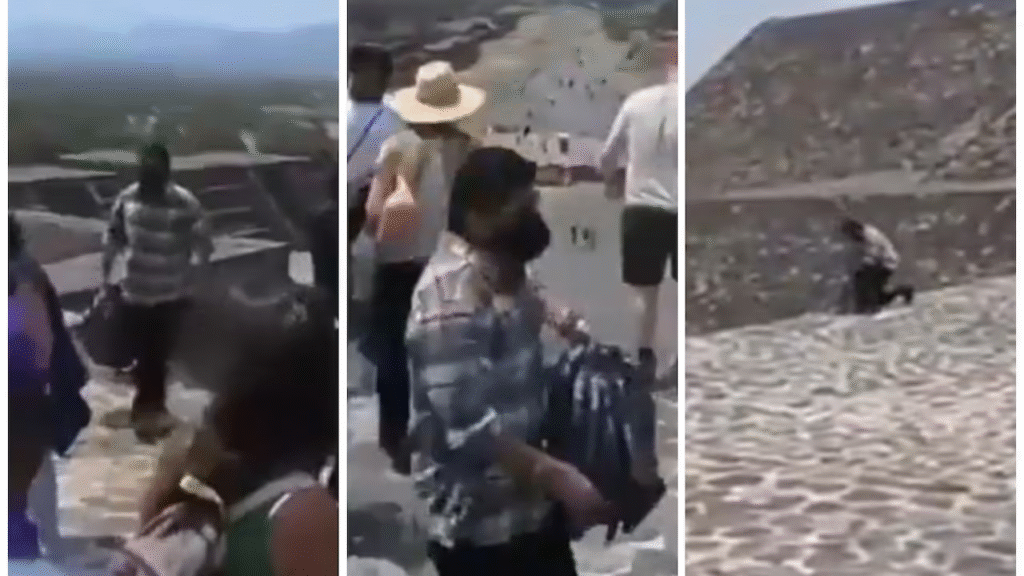 Un video que se ha vuelto viral muestra cómo, mientras decenas de visitantes subían los milenarios escalones o se tomaban fotografías en la plaza central de Teotihuacán, un hombre vestido con ropa oscura camina con aparente normalidad entre la multitud.