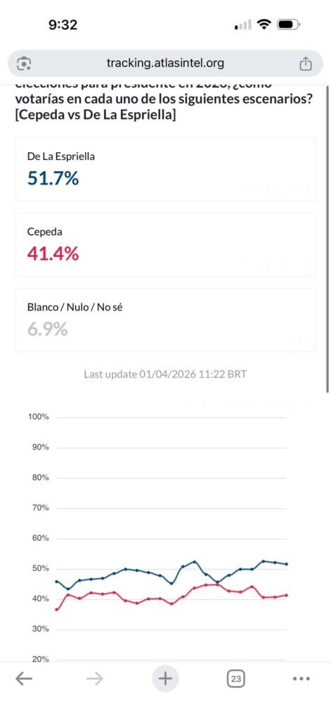 Para rematar, Atlas Intel —la encuestadora reconocida por acertar en elecciones donde otras fallaron, como las de Jair Bolsonaro (Brasil), Gustavo Petro (Colombia) y Donald Trump (EE. UU.)— indicó en su más reciente medición que el Tigre tiene más posibilidades de ganarle a Cepeda en segunda vuelta que incluso Paloma Valencia.